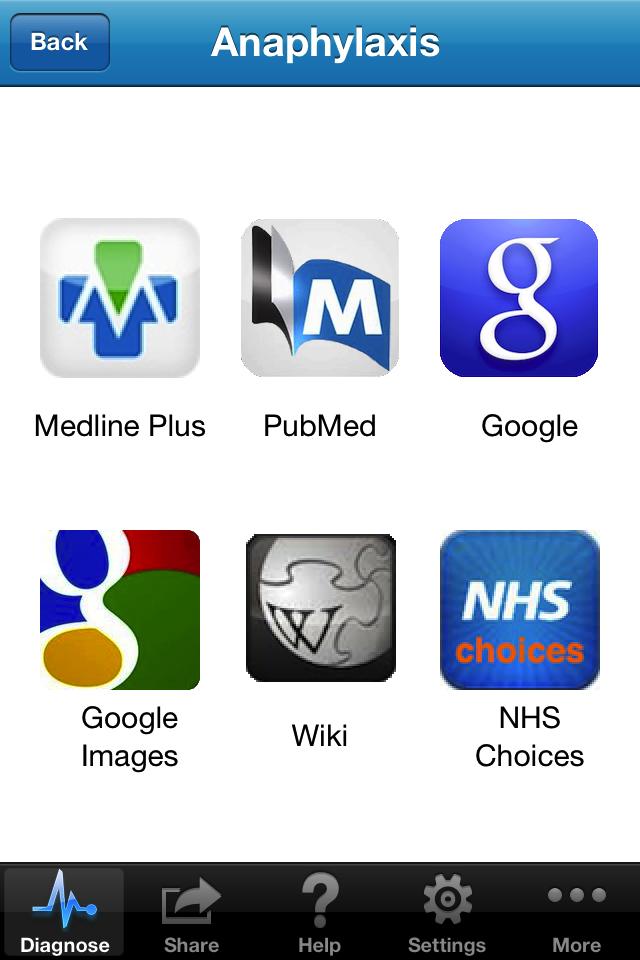 •从诊断到知识的链接从可自定义的移动Web资源列表中进行链接。